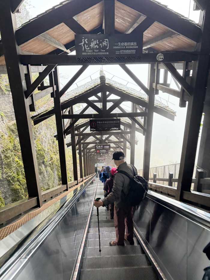 하산시에는 에스컬레이터를 타고 내려갑니다.