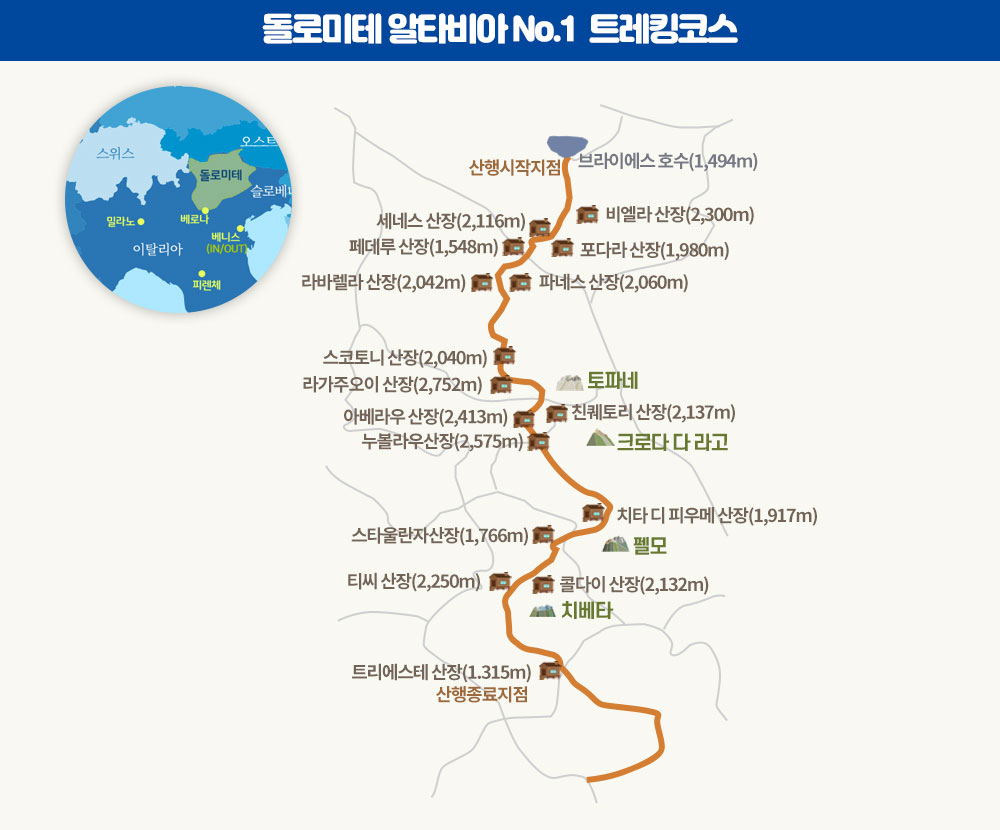 ※ 숙박하는 산장 중 Rifugio Tissi는 짐수송이 불가합니다.