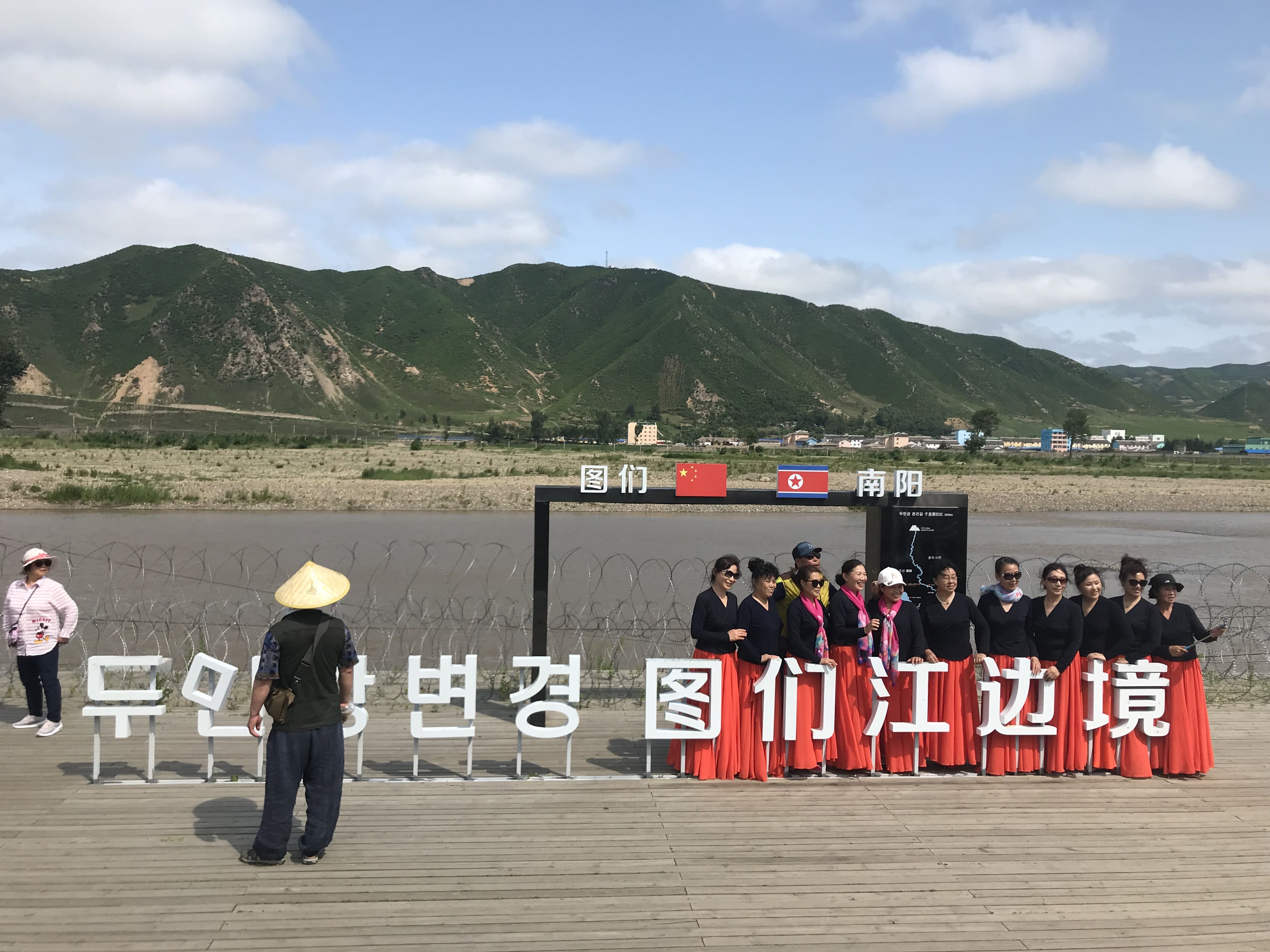 ▶ 중국과 북한의 접경지역으로 국경선이 보이는 두만강 공원 관광