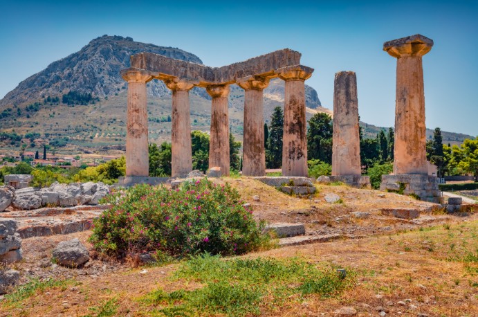 고린도 유적 고린도는 기원전 6세기에 최고 번영을 누렸던 도시국가입니다. 본토와 펠레폰네소스를 잇는 길목에 위치해 오랜 기간 번영했습니다. 오늘날의 유적은 기원전 146년 새로운 지중해 패권자가 된 로마에 저항하다 초토화되고 백 여 년이 지난 후, 옥타비아누스 로마 초대 황제에 의해 재건된 후 최고의 국제도시로 재개발된 유적입니다. 거대했던 고대 도시의 규모만큼 고린도 박물관에서는 2세기 로마 시대에 제작된 모자이크화와 항아리, 도자기, 보석 등의 소장품을 볼 수 있습니다. |