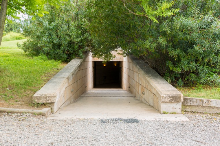 ▲ 필리포스 2세의 무덤인 베르기나 왕묘 박물관 입구입니다. 작은 언덕 같은 곳에 아래로 가는 문이 놓여 있습니다.