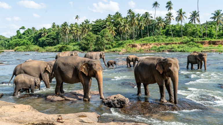 스리랑카는 코끼리를 가까이에서 만날 수 있는 최적의 장소로 손꼽힙니다. 그중 피나왈라 코끼리 고아원은 케갈레(Kegalle) 마을에 자리 잡고 있습니다. 1975년, 스리랑카 야생 동물 관리국은 스리랑카 정글에서 발견된 고아 코끼리들을 보호하고 돌보기 위해 마하 오야 강 근처의 25에이커 규모의 코코넛 농장에서 이 고아원을 설립하였습니다. 현재 이곳에서는 총 93마리의 코끼리가 보호받고 있으며, 이는 세계에서 가장 큰 규모의 코끼리 보호시설로, 매일 각 코끼리에게 76kg의 식사를 제공합니다. 피나왈라의 가장 큰 매력은 약 정해진 시간마다 25마리의 코끼리가 강으로 목욕하러 행진하는 모습과, 마하 오야 강에서 펼쳐지는 그들의 목욕 장면을 가까이에서 관찰할 수 있다는 점입니다.