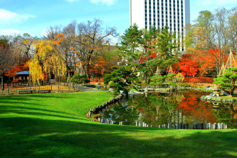 삿포로 시내 벚꽃, 단풍 명소로 유명한 공원으로 삿포로역에서 20분정도 떨어진 곳에 위치해 있습니다.