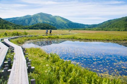 - 오제가하라를 걸으며 일본 100명산으로 꼽히는 히우치가다케(2,356m)와 시부츠산(2,228m)을 앞, 뒤로 감상할 수 있습니다.